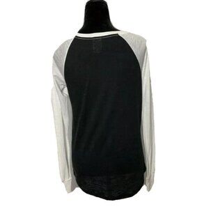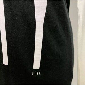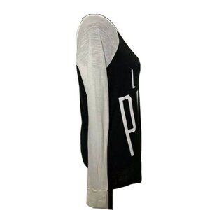 Victorias Secret PINK Lightweight Thin Lets Party Tee, Long Sleeve Sleep Loungewear Graphic Top, Black White Womens Dorm Life Shirt