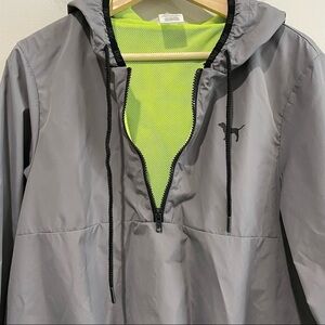 VS PINK Gray Hooded Windbreaker Pullover Oversized, Size Small