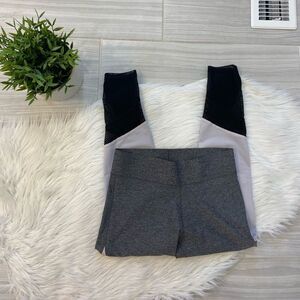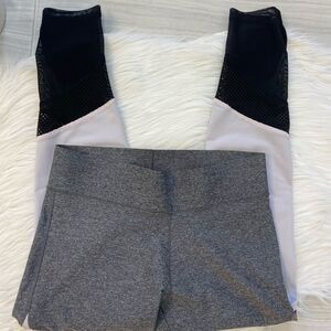 Super cute grey, light pink and black leggings has mesh on the calves