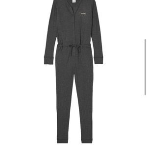 VS PINK Grey Thermal Holiday Merry Happy Drawstring Pajama Onesie w/ Pockets