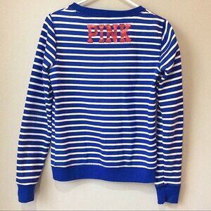 VS PINK University of Kansas KU Jayhawks Blue & White Stripe Sweatshirt