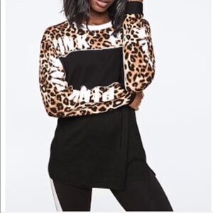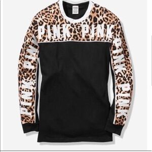 VS PINK Long Sleeve Campus Top Leopard Size Small