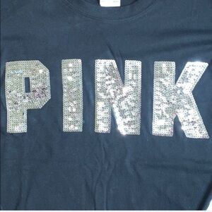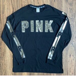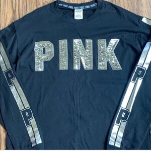 Black long sleeve crew with silver stripes down sleeves and silver bling PINK on front.