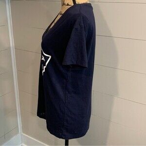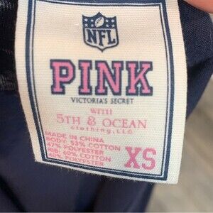 Officially Licensed Gear. Navy Blue T-shirt with Patriots logo with bling on the front. "Love PINK" printed in red on the back. No cracking on the decal logo and no missing bling. T-shirt is somewhat like a burnout material (see photos). Fit seems to be oversized.