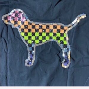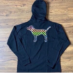 Black hoodie tee with multi-color checkered bling dog on back. Drawstring hoodie. 100% cotton. Brand new in plastic bag. NO TRADES.