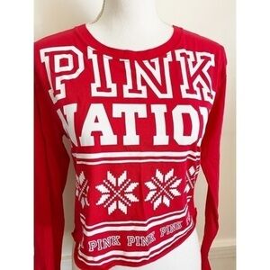 VS PINK • Red White Fair Isle Cropped Holiday Tee