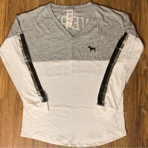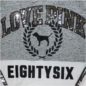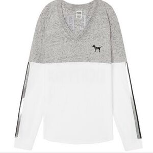VS PINK Sequin Bling Varsity V-Neck Tee