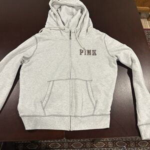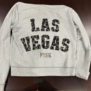 VS PINK Sequin Las Vegas Hoodie Jacket Gray Women’s Sz L Glitter Bling
