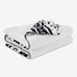 Very cozy sherpa blanket. 100% polyester. Measures 50” L x 60” W. Brand new in plastic bag. NO TRADES