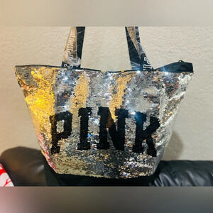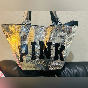 VS PINK TOTE 15” SHIMMERING FLIP SEQUINS SILVER/GOLD TAKE ANYWHERE TOTE SUPER !!