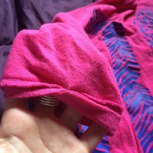 Bring pink with a vibrant blue PINK and animal print 86. got this a long time ago, can't find anymore! wrinkly but only from storage it can easily be washed out. really soft!
