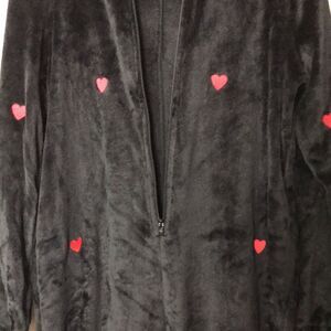 VS PINK Teddy One piece pjs Black w/Red Hearts cozy fall limited edition warm