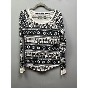 VS PINK Long Sleeve Snowflake Thermal Top Large Sleep Shirt PJ Top Waffle Knit