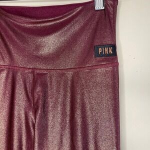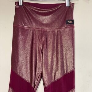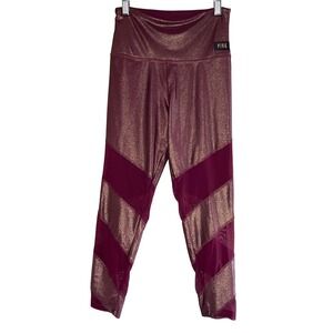PINK VICTORIA'S SECRET ULTIMATE LEGGINGS METALLIC BURGUNDY WITH MESH CUT OUTS