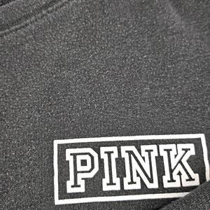 Features: Repeated "PINK" logo on sleeves and neckline, relaxed fit, soft and cozy fabric blend