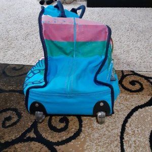This is very rare, for the age of this item it is in good condition, fair condition inside. The outside has some light dirt marks, not very noticeable, It has a large pocket on the outside. The handle closes down the side (see photos) works perfect, wheels are fine, Inside has a zipper and velcro so you may be able to take inside lining out to clean. Inside has some stains see photos and has a rip by the seam on the top inside by zipper. Outside good used condition and inside needs a stitch and spots cleaned.