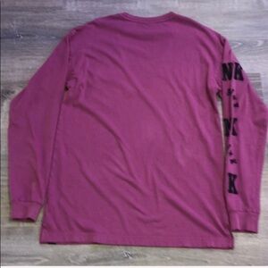 Long sleeve with PINK LOVE PINK wording on right sleeve. Deep v-neck. Front pocket has tropical flower design. Approximate measurements are 18” across chest and 18” from shoulder to hem. NO TRADES