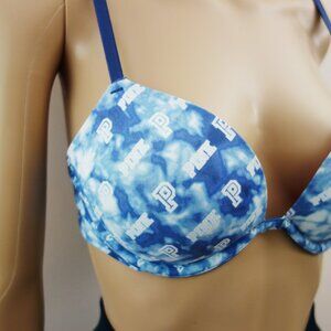 VS PINK Wear Everywhere Super Push up Blue Tie Dye Bra (34B) EUC