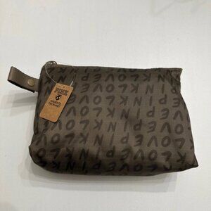 COMES WITH A ZIPPER POUCH TO STORE IT IN! GREAT FOR VACATION AND OVERNIGHT TRIPS. HAS LOVE PINK LOGO ALL OVER BAG. NEW STILL IN PLASTIC!
