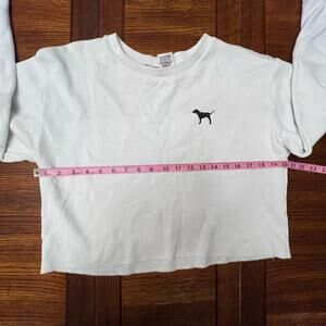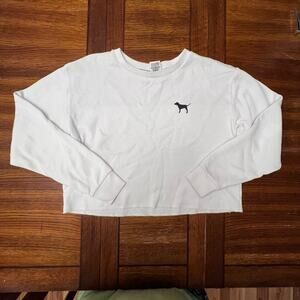 VS PINK White Crop Top Logo Lounge Sweater Small Mesh Back Womens Teens