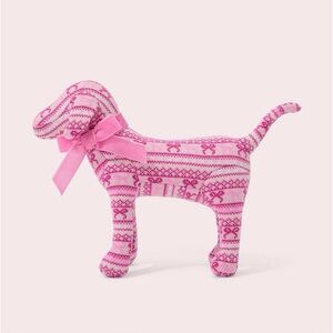 VS PINK X LOVESHACKFANCY MEDIUM DISPLAY STUFFED KNIT DOG PUP PRETTY FAIRISLE NIB