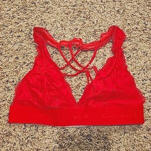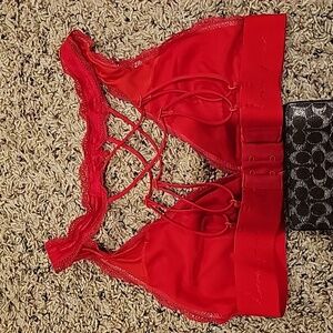 VS PINK XS Red “love Pink” Strap Logo lace trim triangle bralette