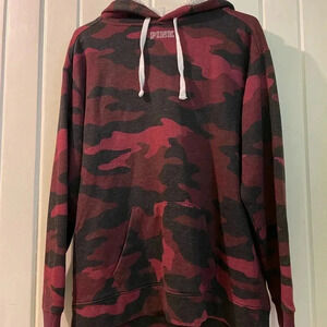 EUC with no defects at all. Size small camouflage pullover hoodie with a Sherpa lined hood, embroidered writeout on front and a big silver bling writeout on back. Tote 6.,