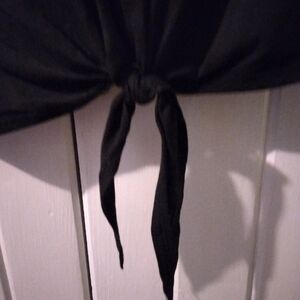EUC-Like new condition with no signs of wear! Size large black cropped style top from 2012 (armpit to armpit is 22" and centerback length is 17". Writeout is done in an iridescent holographic shine, sleeves have black bling and ties at bottom. No defects at all. Price firm.