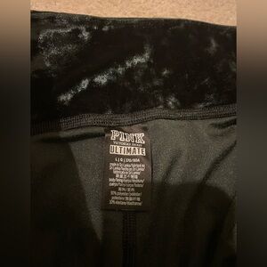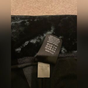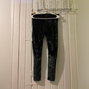 Like new with no visible signs of wear. Maybe worn once or twice. Size large ultimate leggings in a dark green crushed velvet. Flat waist 16” front rise 9 1/2” and inseam 28 1/2”. Tote 14.