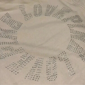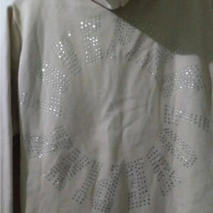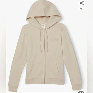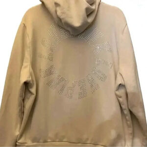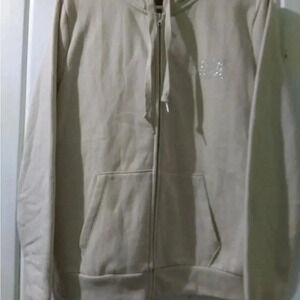NWT size large light beige(1,2,4 and 7 came out correct color full zip hoodie with rhinestone bling writeout on front and back. No defects and price firm.