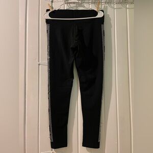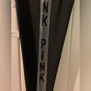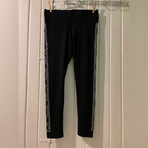 NWOT and no defects at all. Size large black leggings with rhinestone bling down both legs. Flat waist 16” front rise 10” and inseam 28 1/2”. Tote 17.