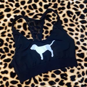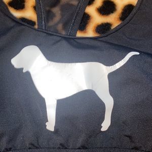 Vs PINK sports bra with big dog logo. Shows some signs of cracking on dog please see photos. No other flaws noted. Racerback style in VGUC. Size medium reasonable offers welcomed and will be considered