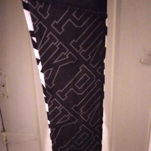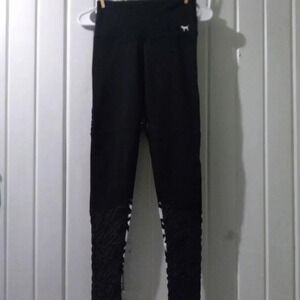 NWOT and no defects. Size X-small (flat waist 12" inseam 27") black with lots of writeout on front and back. The solid black area on back of leggings is a see through mesh material(like a jersey mesh). Super cute and HTF. Price firm.