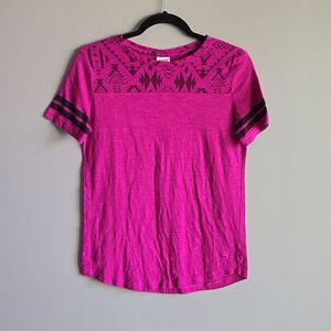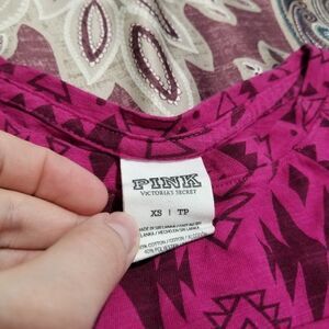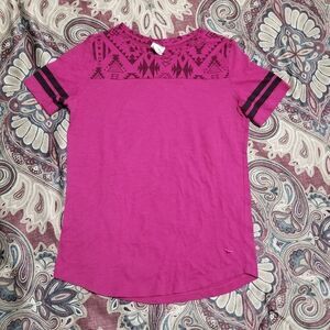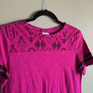 VS PINK Black & Pink Barbiecore Aztec Striped Y2K Casual Short Sleeve Tee Shirt.