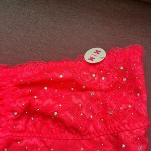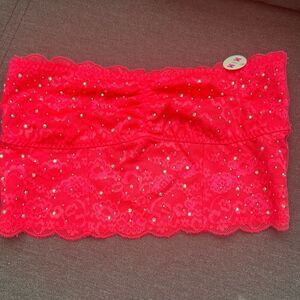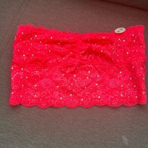 VS PINK Size M Strapless Lace Bandeau Hot Pink Rhinestone Accent Tube Top NWT
