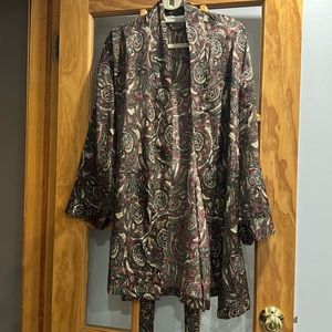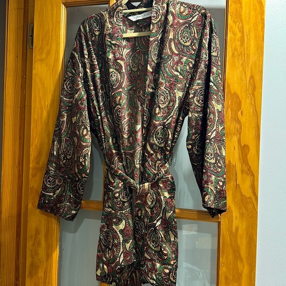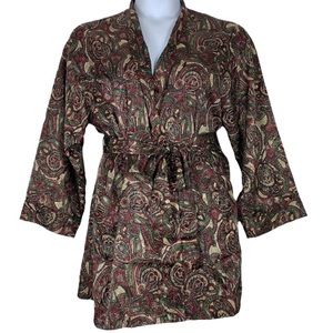 Burgundy/Green/Tan Paisley Print Satin Robe - like new