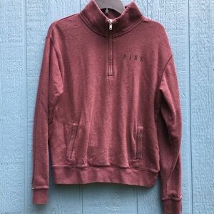 Victoria’s Secret Pink Quarter Zip Pullover Long Sleeve Top, size small S. Good used condition with no major flaws, does have some piling and some discolor as pictured. Not a hoodie jacket. Large 86 Love Pink logo on back. Maroon / burgundy in color
