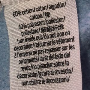 This is a cropped hoodie it is long, but if you are a medium it will be a regular shirt. The color is light blue with black and white letters.