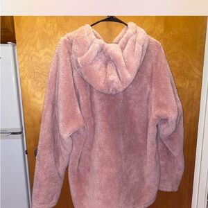 Victoria’s secret Pink colored fluffy teddy bear hoodie coat. size large. can be worn oversized. keeps you super warm. great condition. soft.