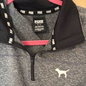 VS Pink Gray Quarter-Zip Pullover with Dog Logo