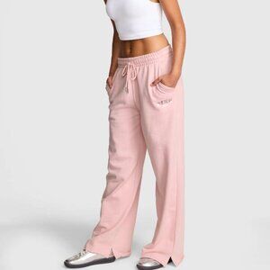 VS Pink Ivy Fleece Wide-Leg Split-Hem Sweatpants Doll House Light Pink L