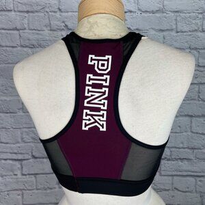 VS Pink Logo Maroon Mesh Sports Bra Size L