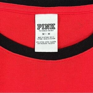 Victoria's Secret PINK crew neck long sleeve top. Red, black, marled grey with lots of silver bling.