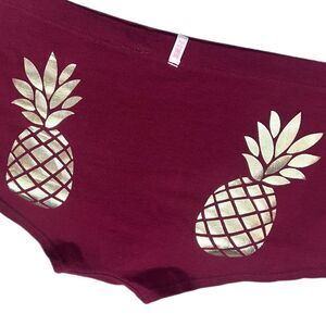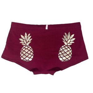 NWOT Low Rise Boyshort Panty by Victoria’s Secret Pink. Maroon with gold rear pineapple graphics.
