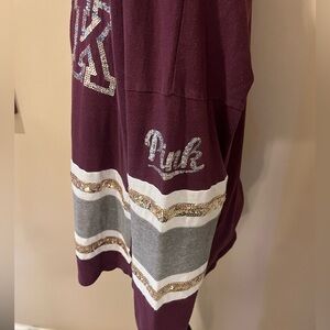 VS Pink Oversized Purple V Neck Long sleeve tee, with sequins, size L