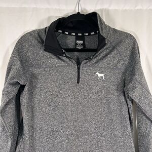 VS Pink Sweater Women's Medium Grey Heathered 1/4 Zip Pullover Mock Neck