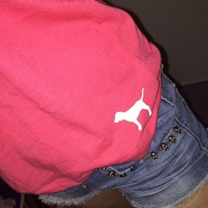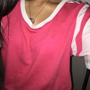 NWOT. VS Pink t-shirt with two white stripes on the side. Very nice color.