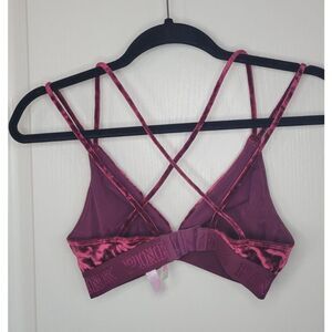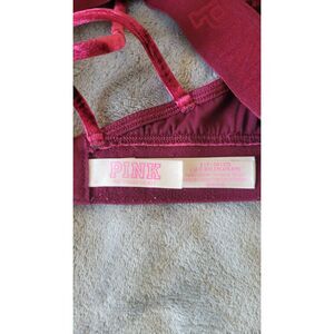 VS Pink Unlined crushed velvet strappy bralette. Beautiful maroon color. Size small. Has slight pilling around band, but nothing major. Adjustable band with three different hook closures to find the best fit. Indulge in ultimate comfort and style with the VS Pink Unlined Crushed Velvet Strappy Bralette. This luxurious bralette features a soft, crushed velvet fabric that feels amazing against your skin. The strappy design adds a touch of sexy, while the unlined cups provide a natural, breezy feel. Perfect for lounging, layering, or as a standalone piece, this bralette is your new go-to for effortless confidence.