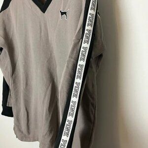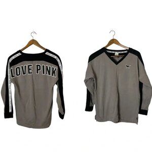 VS Pink Victoria's Secret Gray Black & White Collegiate Sweatshirt - long sleeve cozy and comfy v-neck pullover sweater.