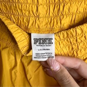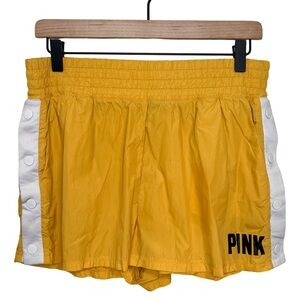VS Pink yellow athletic shorts, with stretchy waistband and snap buttons on both sides. Two side pockets. In excellent used condition.
